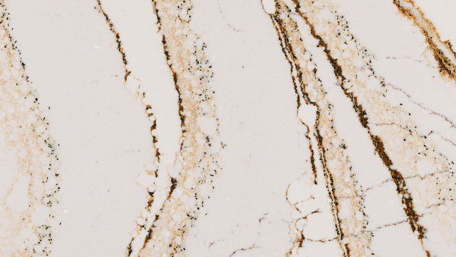 Presentamos el cuarzo Clovelly de Cambria: una fusión de elegancia cremosa con un toque de cobre y un encanto marrón. Las delicadas vetas que serpentean por toda la superficie, adornadas con toques de puntos negros, crean un diseño sofisticado que realzará cualquier espacio. Fabricado a mano con precisión y materiales de calidad, el cuarzo Clovelly es la opción perfecta para quienes buscan una estética atemporal y refinada en su hogar.