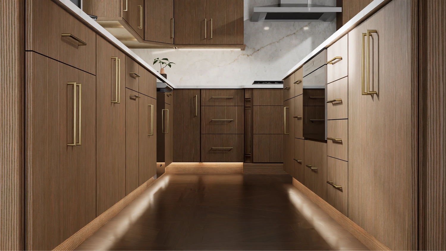 The Luxe Canyon Oak cabinetry by Fabuwood features premium White Oak construction with a sleek rift-cut design, full-overlay doors, and a refined satin stained finish, delivering a bold and contemporary aesthetic. Its deep, rich Canyon Oak color and modern Luxe style create a striking dark-toned look that adds luxury and dramatic appeal to any kitchen. Expertly assembled in the USA, Luxe Canyon Oak offers exceptional craftsmanship, durability, and a high-end design solution for homeowners seeking a sophisticated modern kitchen.